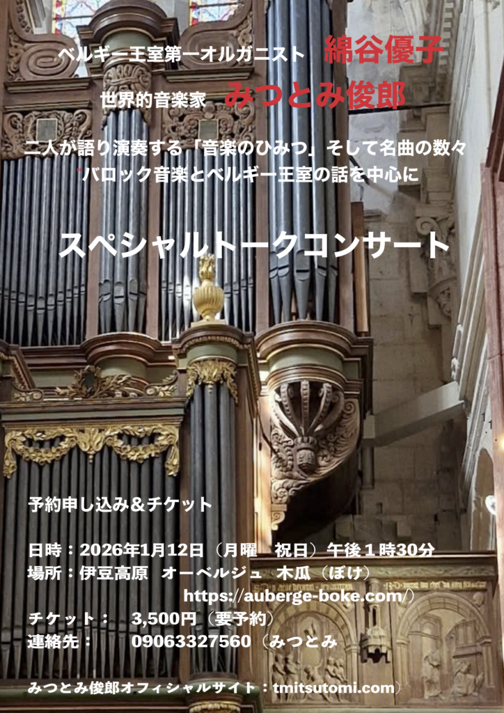ベルギー王室礼拝堂主席オルガニスト綿谷優子さんとのトークコンサート!